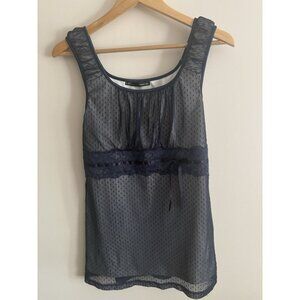 Vintage Y2K Tank Cami Top Blue Mesh Polka Dot Milkmaid Babydoll Fairy Lace Sz M