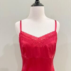 Vintage Y2K Tank Top Size XS Hot Pink 100% Silk Cami Girly Soft Girl Babydoll