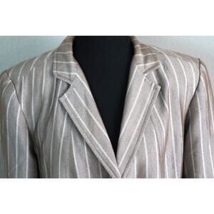 Beautiful suit! Vintage Y2K Taupe PIN STRIPED Pant Suit SET Women 14 Wide Leg Boot COTTON Blend Work
