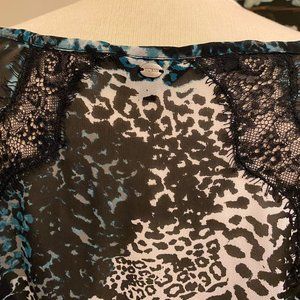 Vintage Y2K teal and black chiffon and lace animal print blouse from Guess. Pretty, romantic details like ruffled pleats with silver & black tiny buttons. Elastic no longer grips on one sleeve cuff. In beautiful condition otherwise. Size M.