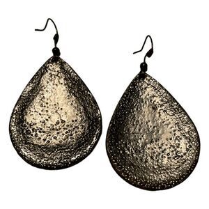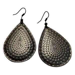 Vintage Y2K Teardrop shaped Dangle Earrings are a Silver Tone Textured Metal on a Silver Wire. It is great for casual days at work, school, date night, night out with the girls, and Family Dinner. It would make a great Christmas Hanukkah Valentine’s Day Mother's Day Birthday or any Holiday gift!