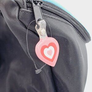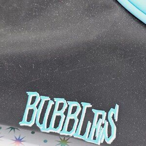 Measures 10" tall, 10" across, 4.5" width. Very rare, hard to find Bubbles mini backpack from 2000 in amazing condition. The backpack has an interesting shape with a sloped bottom and rounded sides. The zipper pull is a plastic puffy heart.