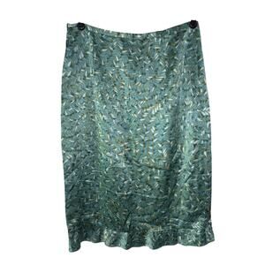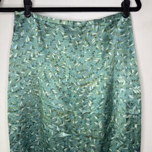 Vintage Y2K Tibi Skirt Women's 6 Silk Green Leaf Pattern Lorelai Gilmore Girls