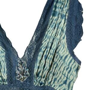 Vintage Y2K Tie Dye Embellished Silk Slip Dress Medium Blue Beaded 2000s Lace