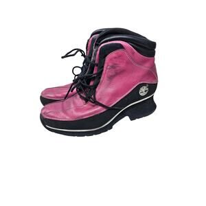 Vintage Y2K Timberland Boot Pink Black 8 Leather Streetwear Casual Lace Up
