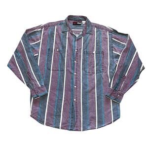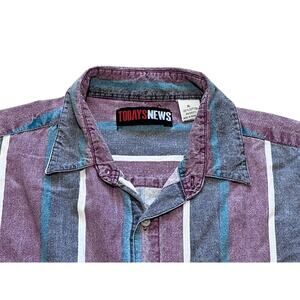 Vintage Y2K Todays News Striped Long Sleeve Button Down Shirt Size XL