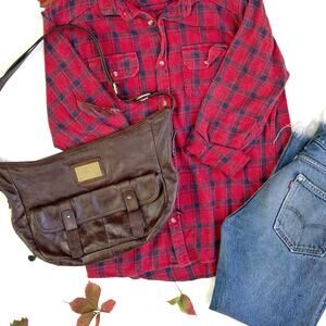 Vintage Y2K Tommy Hilfiger Chocolate Leather Shoulder Bag | 2000s Banana Style