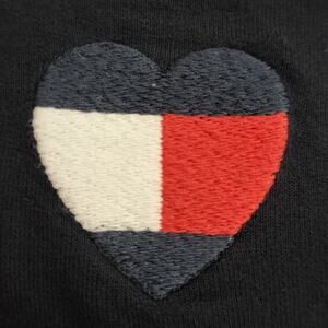 Navy blue, gray, red color block. Embroidered heart patch on chest