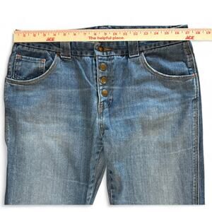 Style tags: vintage, Y2K, 2000s, cowboy core, wide leg, raw hem, snap fly, rugged, western, Americana, faded denim, non-stretch, relaxed fit, boho, retro