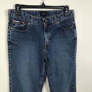 Vintage Y2K Tommy Hilfiger Euro Flare Blue Jeans Denim Big Logo Patch Size 27