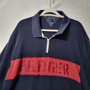 Vintage Y2K Tommy Hilfiger Long Sleeve Polo Shirt Quarter Zip Pullover Top 3XL