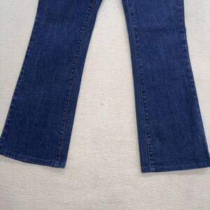 Vintage Y2K Tommy Hilfiger Low Rise Flare Rhinestone Jeans in size 5. These dark wash denim jeans feature a button fly closure, rhinestone accents, and a flared style. Made of cotton and cotton blend materials, they have a regular fit and a low rise. With a 29-inch inseam, these jeans are machine washable and perfect for a stylish Y2K, 90s, or bling-inspired look.