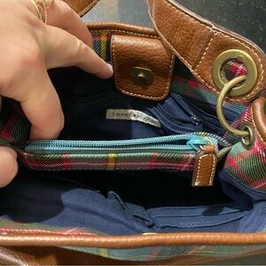 Such a fun pop of color in this plaid / leather bag by Tommy Hilfiger