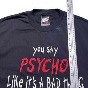 Vintage Y2K Top Heavy You Say Psycho like it's a Bad Thing Graphic T Shirt L . Condition is Pre-owned - Good. Shipped with USPS Ground Advantage.