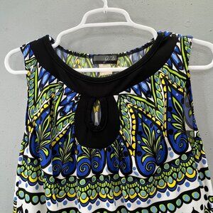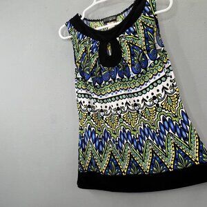 Vintage Y2K Top M Geometric Peacock Black Blue Green Keyhole Neck Sleeveless JTB