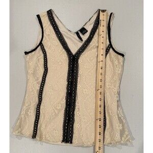Vintage Y2K Top Womens Medium Lace Coquette V Neck Fairy Scandi 90s Romantic
