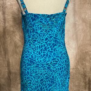 Vintage Y2K Tropical Tantrum Blue Floral Leaf Print Beaded Sequin Mini Dress