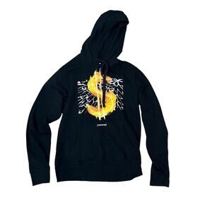 Vintage Y2K True Religion Flaming Dollar Sign Black Hoodie Mens Size Medium