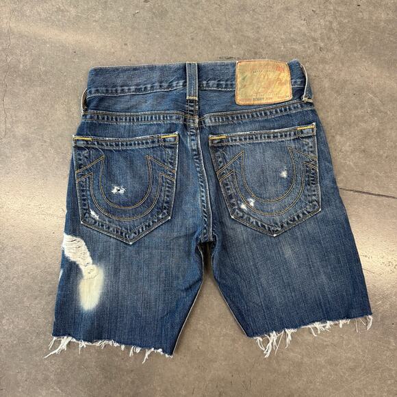 Vintage Y2K True Religion Fray Cutoff Bermuda Jorts Jean Shorts 29 Medium Wash