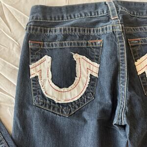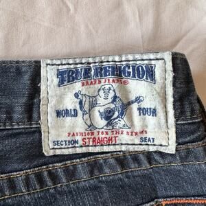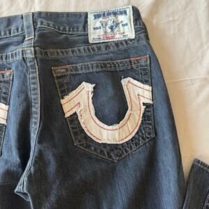 Vintage Y2K True Religion Jeans Relaxed Blue Made in USA 36x33 White Red Pockets