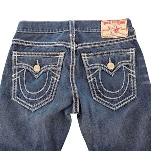 Elevate your denim game with these iconic vintage Y2K True Religion Ricky Big QT Straight Leg Jeans in a classic dark wash with bold contrast stitching and signature flap pockets! Crafted in the USA from 100% cotton, these premium jeans deliver that authentic, rugged style True Religion is known for.