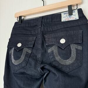 Vintage Y2K True Religion Womens Dark Skinny Jean Rhinestone Denim Pants Size 26