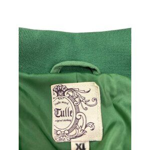 Vintage Y2K Tulle Green Moto Zip Front Jacket With Cuffed Sleeves Size XL
