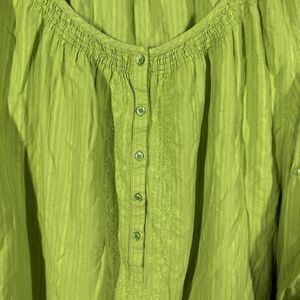 Vintage Y2K Tunic Women Plus Size 4X Green Roll Tab Sleeve Boho Embroidered Top
