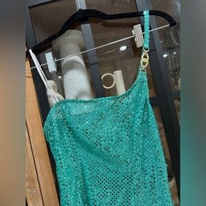 • Authentic Y2K-era turquoise sequin mini dress by Mona V Intimates