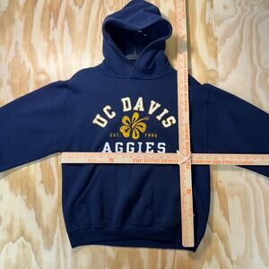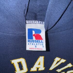 Vintage / Y2K UC Davis Aggies’s Russell athletic 1990/2000’s era collegiate university college art graphic logo essential heavyweight boxy fit navy blue hoodie, hooded sweatshirt