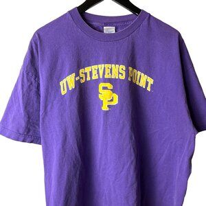 Vintage Y2K UW Stevens Point SP T Shirt Purple 2XL XXL Graphic Tee Cotton Solid
