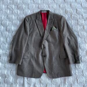 🔥Vintage Y2K Union Made USA 100% Wool Glen Plaid Suit Blazer 46S & Pants 37