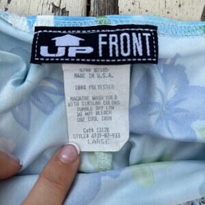 Vintage Up Front 2000s-style smocked mini dress with bold hibiscus floral print – made in USA.