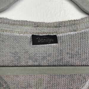 Vintage Y2K Vanity Top Womens Large Gray Distressed Thermal Fleur de Lis Bling