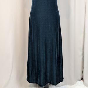 Step back in time with this gorgeous vintage Y2K velvet maxi dress! The dark green color is perfect for any occasion. While the size tag is missing, we estimate it to be a Medium. Please refer to the measurements below to ensure a perfect fit.