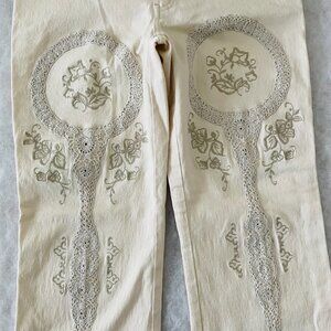 Vintage Y2K Very Vera Womens Cream Embroidered Floral Wide Leg Jeans Size 8