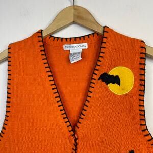 Vintage Y2K Victoria Jones Halloween Sweater Vest Embroidered Orange Womens M