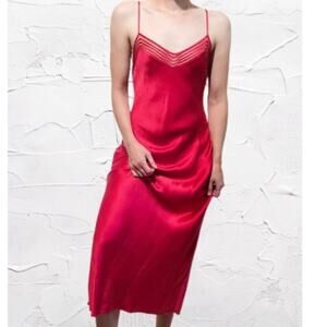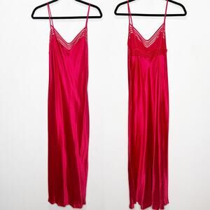 Vintage Y2K Victoria's Secret 100% Silk Maxi Slip Dress Mesh Crimson Red