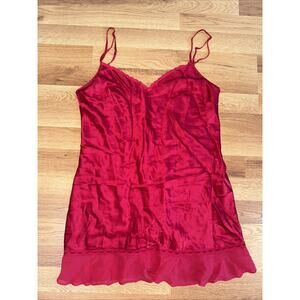 Vintage Y2K Victorias Secret 100% Silk Red Mini Slip Dress Lace Chiffon M