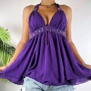 Vintage Y2K Victoria's Secret Purple Silver Halter Strappy Silk Top - Large