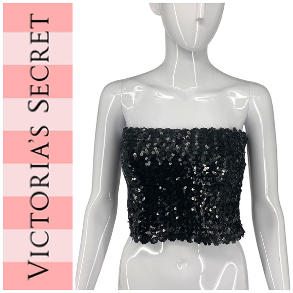 Vintage Y2K Victoria's Secret Sz L Black Sequin Tube Top Bandeau Strapless Disco
