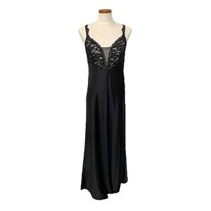 Vintage Y2K Victorias Slip Dress M Black Satin & Lace White Gold Label Side Slit