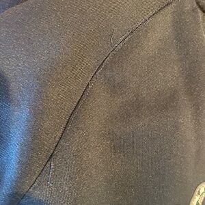 Very good vintage condition. One aglet is missing on one of the drawstrings. There is also about three inches of missing stitching on the right shoulder. However, the seam is not coming apart. These flaws are pictured.