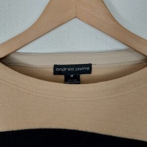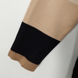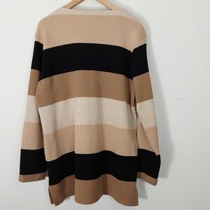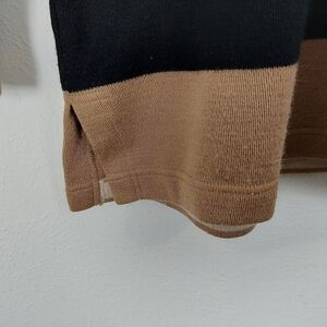 Vintage Y2K Brown Beige Dtriped 100% WOOL Tunic Crewneck Pocketed Sweater Sz M.