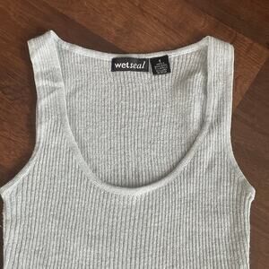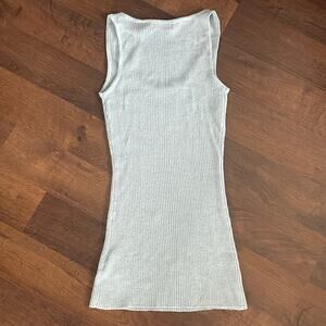 Vintage Y2K Wet Seal Powder Blue Metallic Long Ribbed Knit Stretch Tank Size S. Color is difficult to photo. Label pictures show truest color. Metallic sparkle throughout. In excellent condition.