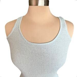 Vintage Y2K Wet Seal Powder Blue Metallic Long Ribbed Knit Stretch Tank Size S