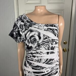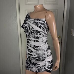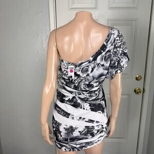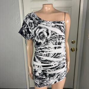 Vintage Y2K Wet Seal Women's Dress XL One Shoulder Floral USA Stretch Mini T7