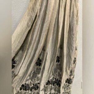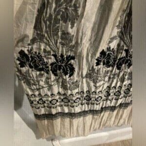 Vintage Embroidered Y2K 90’s Boho Floral Crepe Stretch Smocked Gypsy Midi Dress