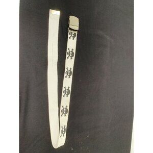 Vintage Y2K White Cotton Belt with Black Skulls & Crossbones Slide Adjustable