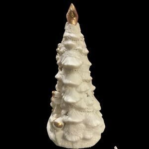 Vintage Y2K White Gold Ceramic Light Up Christmas Tree Star Cutouts Home Decor